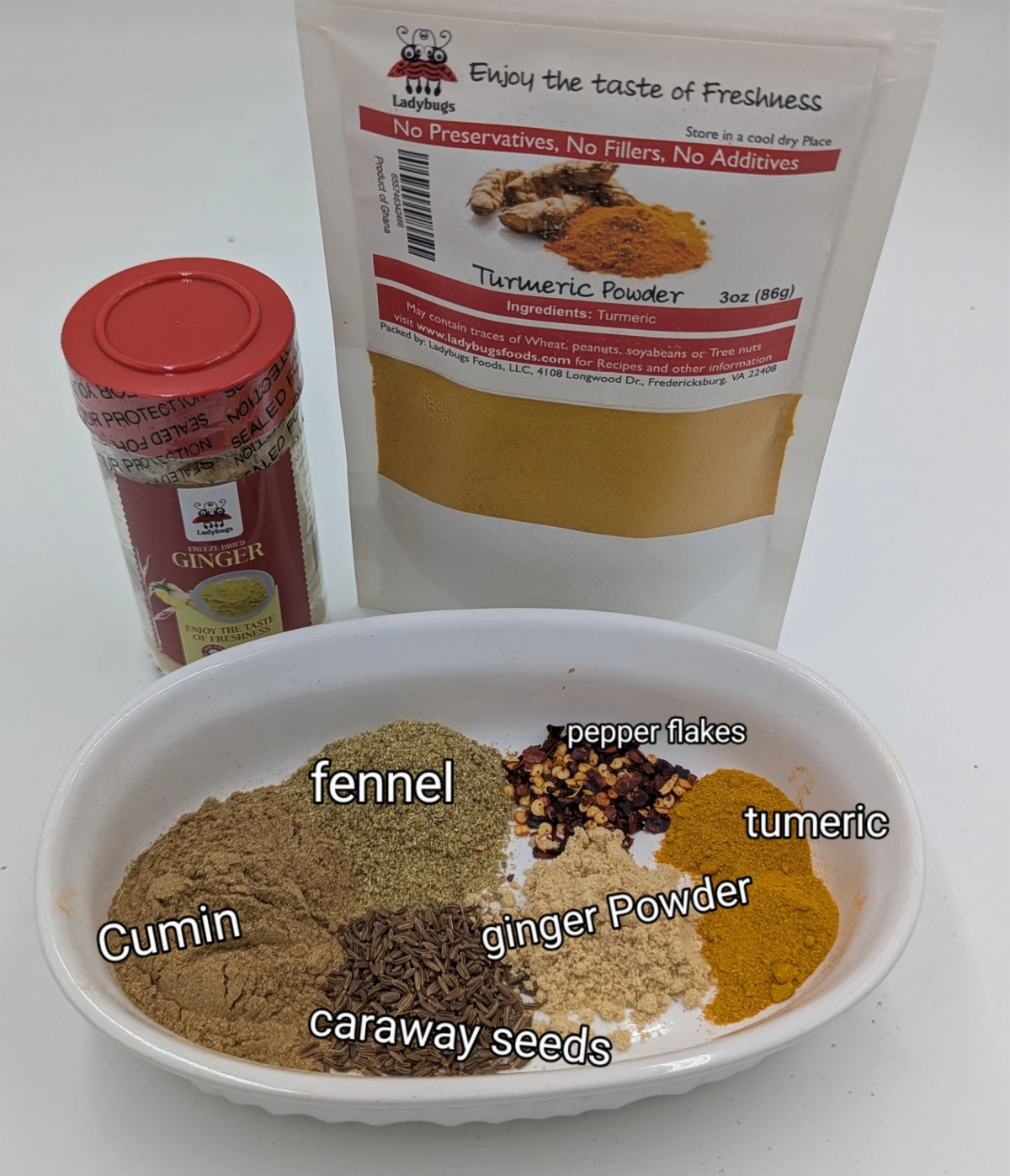 Add Tumeric, Ladybugs Ginger & Cinnamon, and stir